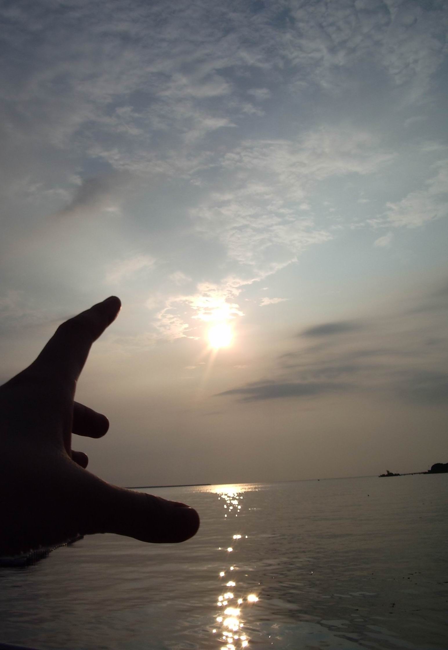 海面に写った夕日は自分の所に真っ直ぐのびて来ます。