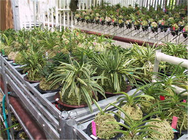 ![]() ![]() 手塚義光氏(千葉県・驚庵)の風蘭の作棚です。どの株も手入れがゆき届いていてみごとです。 1000鉢はゆうに越えています。すばらしい株ばかりで本当にため息がでますね。 右側は駿河覆輪の大株です。ここまでするのに何十年もかかっていると思います。 鉢も間違いなく名人に作らせた特注品ですね。 |